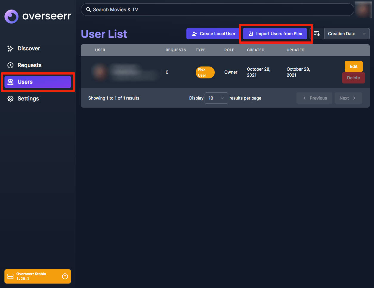1. Click "Users" on the left, then "Import Users From Plex"