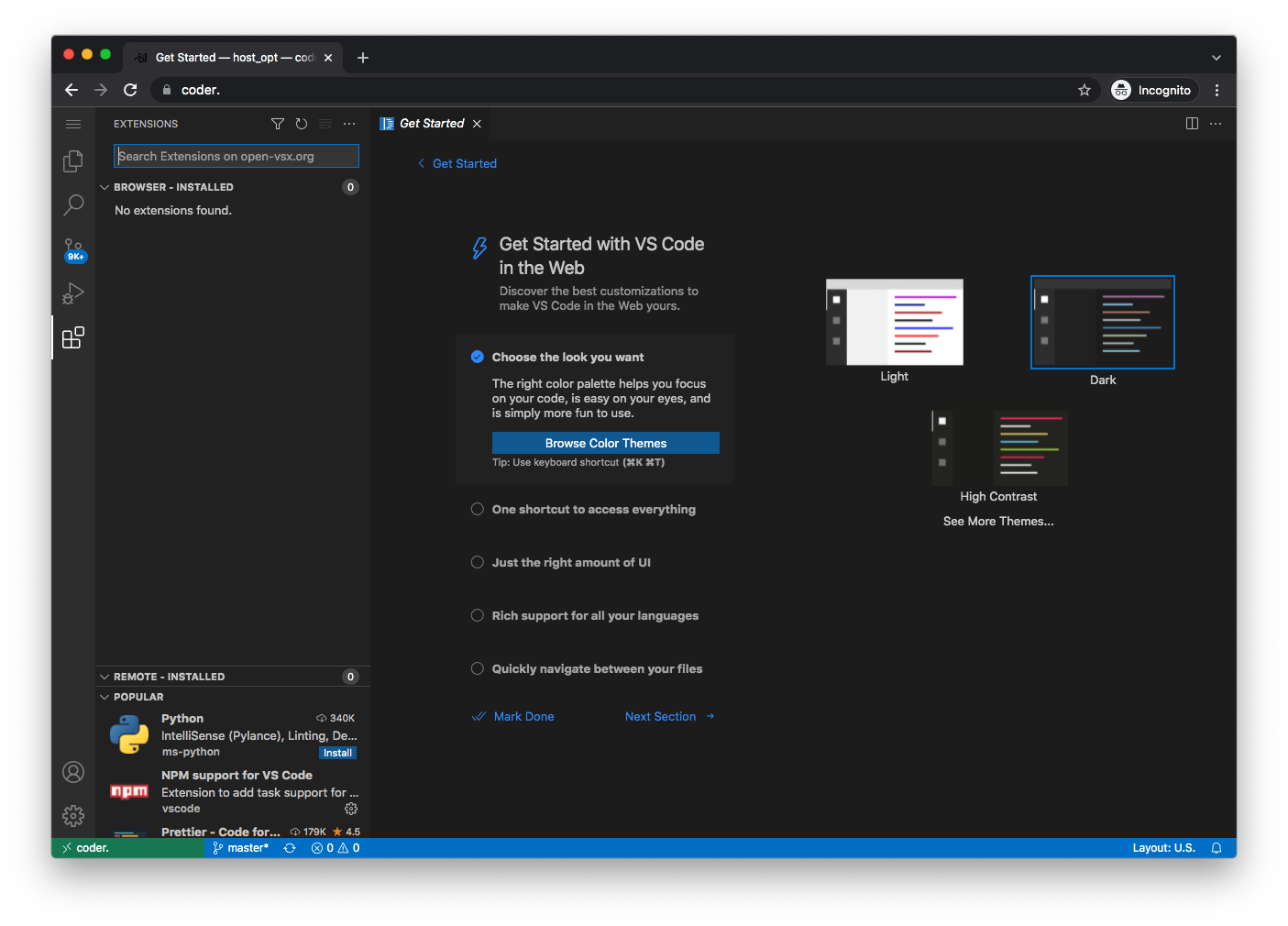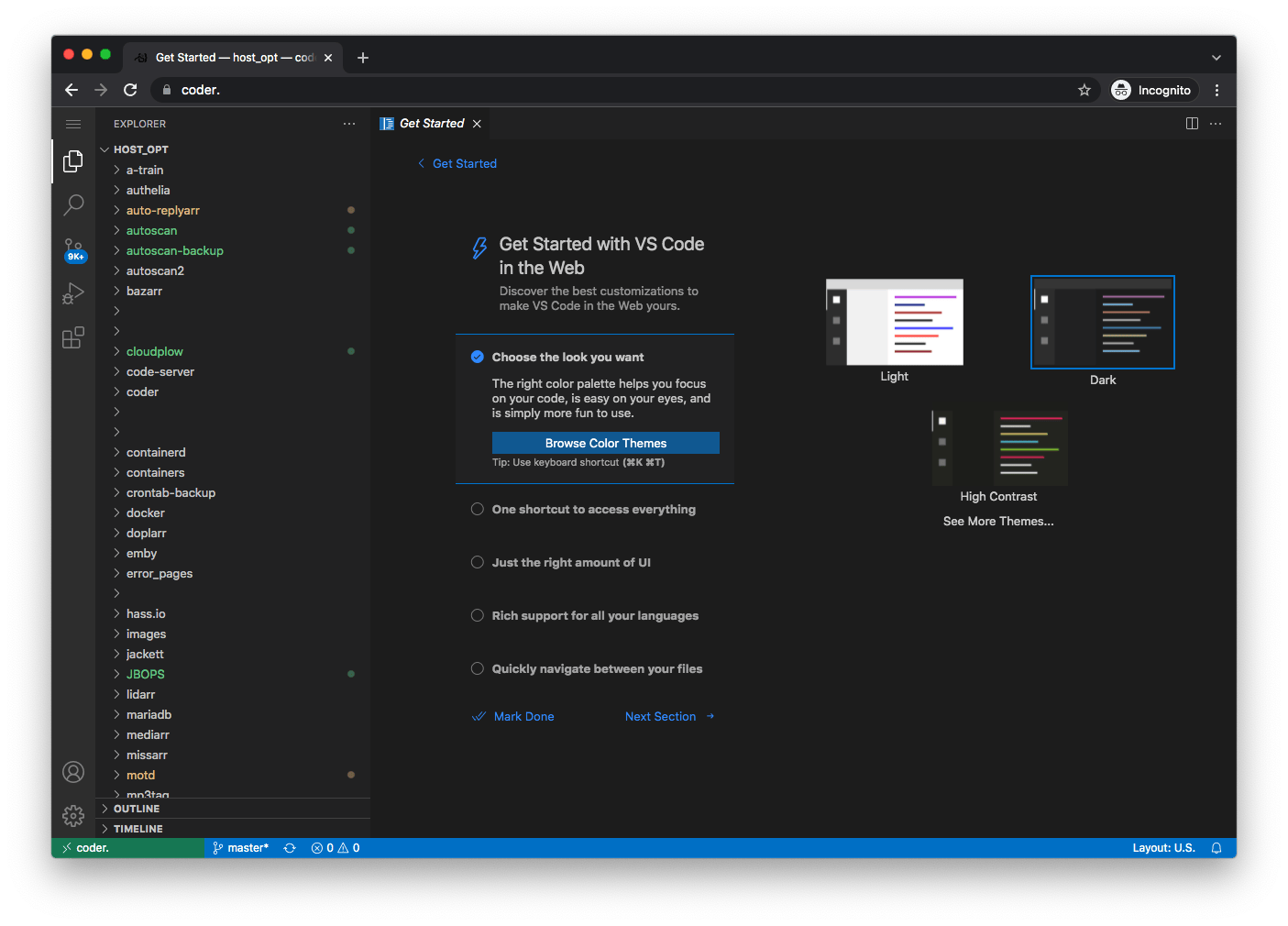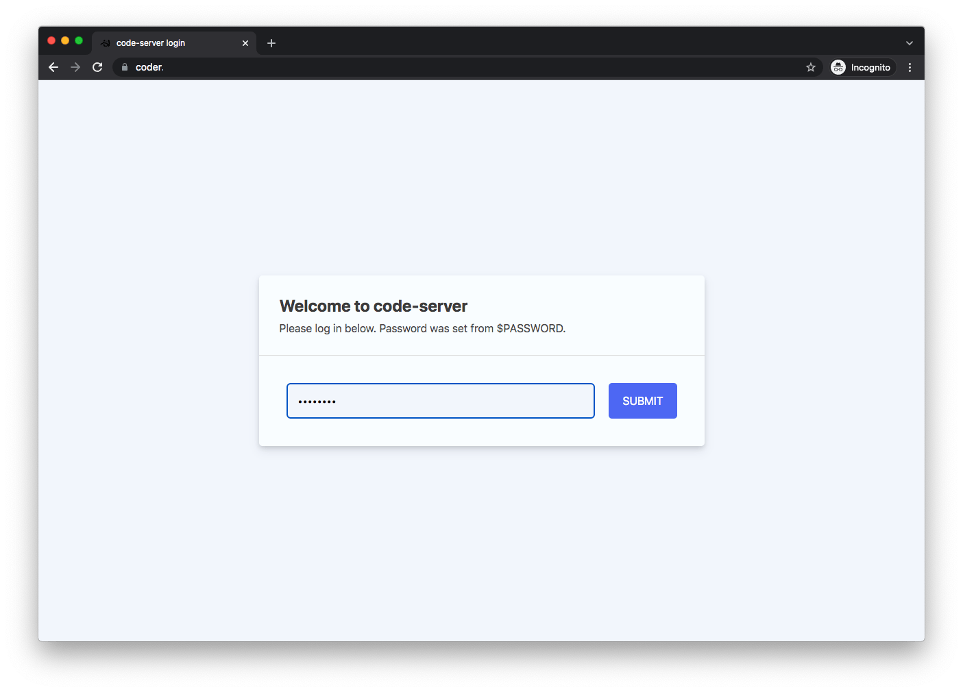 By default, code-server will be available at [https://code-server.yourdomain.tld].